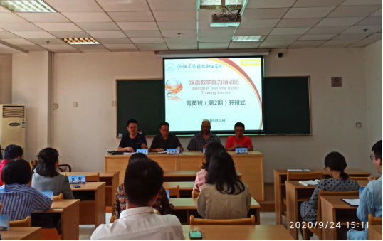 为进一步提升学院国际化办学水平,增强教师双语教学能力,学院分别于9月22日和9月24日在行政楼201室举办双语教学能力培训卓越班(第1期)、菁英班(第2期)开班式。学院人事处(教师发展中心)、教务处(国际交流中心)有关人员及30余名教师参加了开班仪式。