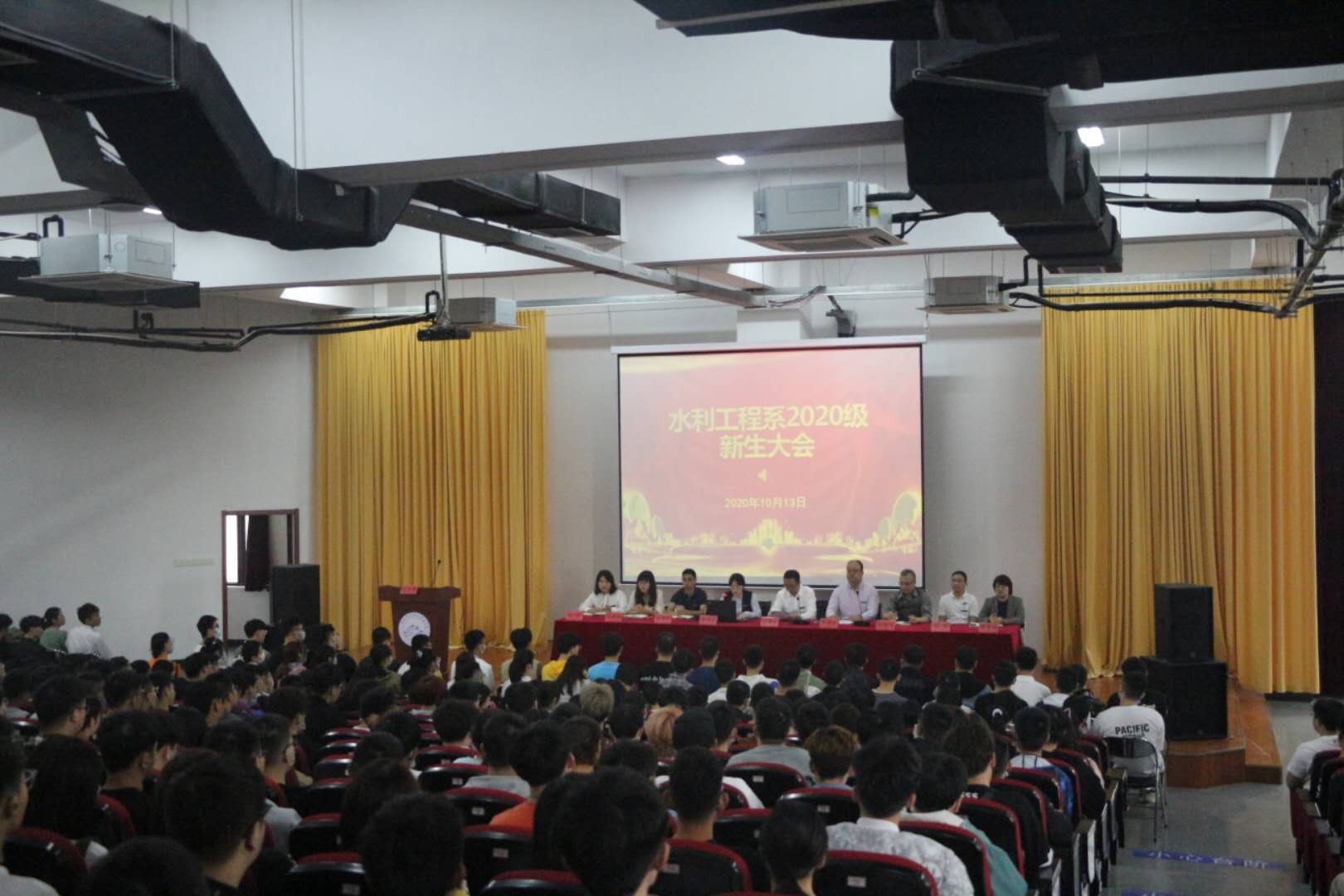 金秋十月,阳光明媚,水利工程系700余位新同学如期而至。10月13日上午,水利工程系在瓯江楼三楼报告厅召开了2020级新生大会,系主任刘进宝、党总支副书记王志远、各专业部(专业方向)主任、教学秘书、辅导员、班主任以及全体2020级新生参加大会,系副主任金斌斌主持大会。