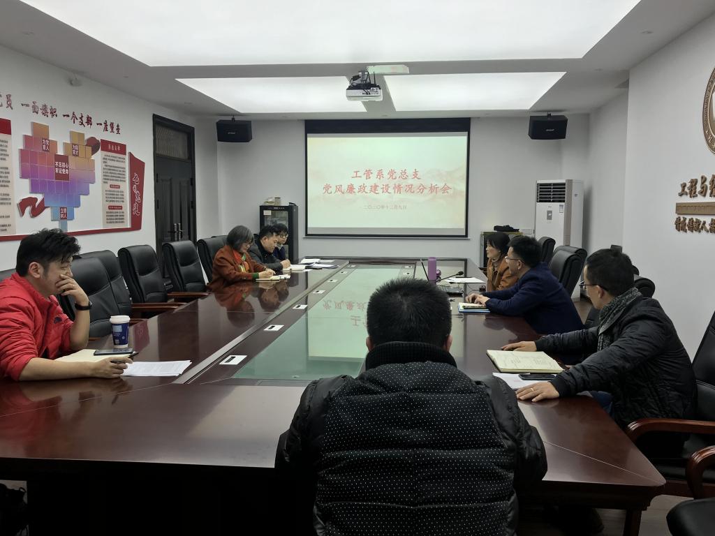 12月9日,工管系在B306会议室召开2020下半年党风廉政建设情况分析会。工管系党政领导班子成员、各专业部主任(支部书记)、实训基地主任、团总支书记参加了此次会议,会议由系党总支书记周恺主持。