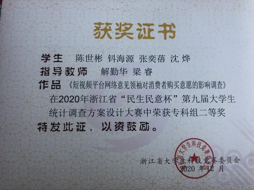 工管系3个代表队在浙江省“民生民意杯”第九届大学生统计调查方案设计大赛中喜获佳绩