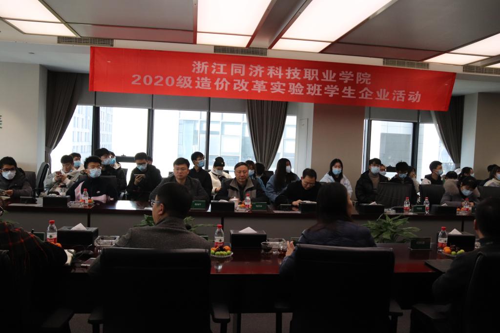 秉持产教融合、校企合作共同培养人才的理念,2021年1月18日,在杭州市建设工程造价管理协会主导下,学院2020杭州造价改革实验班全体同学走进浙江建安工程管理有限公司。