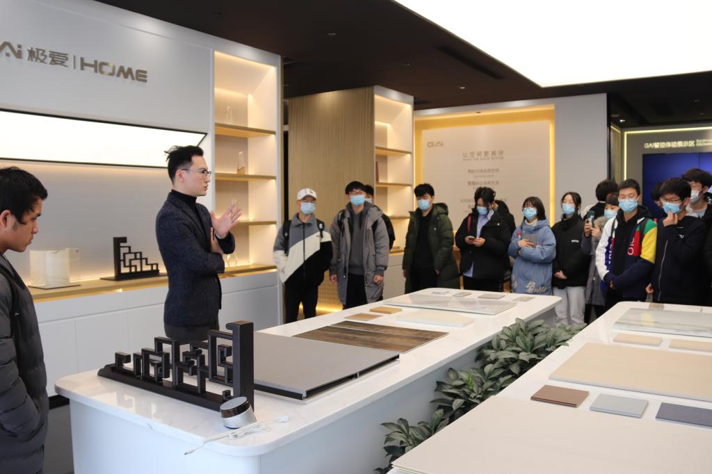 座谈会后,在工作人员的引导下,实验班学生及老师一行依次参观了绿城建筑科技集团极爱展厅、沉浸式空间、装配式样板房和生活家居馆等。