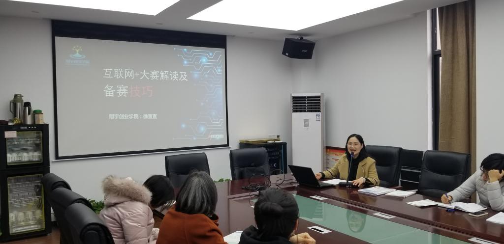 徐宜宜老师以及傅鑫杰书记分别以《互联网+大赛解读及备赛技巧》《第十七届“挑战杯”全国大学生课外学术科技作品竞赛介绍》为题,对“互联网+”创新创业大赛、“挑战杯”等赛事的目的任务、参赛作品要求、赛程安排、奖项设置等作了详细介绍,尤其是结合自身工作经验和体会,对老师们比较关注的比赛技巧以及注意事项等做了深入分析,并结合往届优秀获奖作品进行了具体讲解。