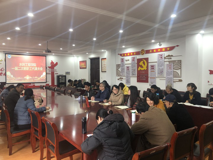 3月10日,水利工程学院在A319召开一届二次教职工代表大会,会议由水利工程学院党总支副书记叶乐主持。
