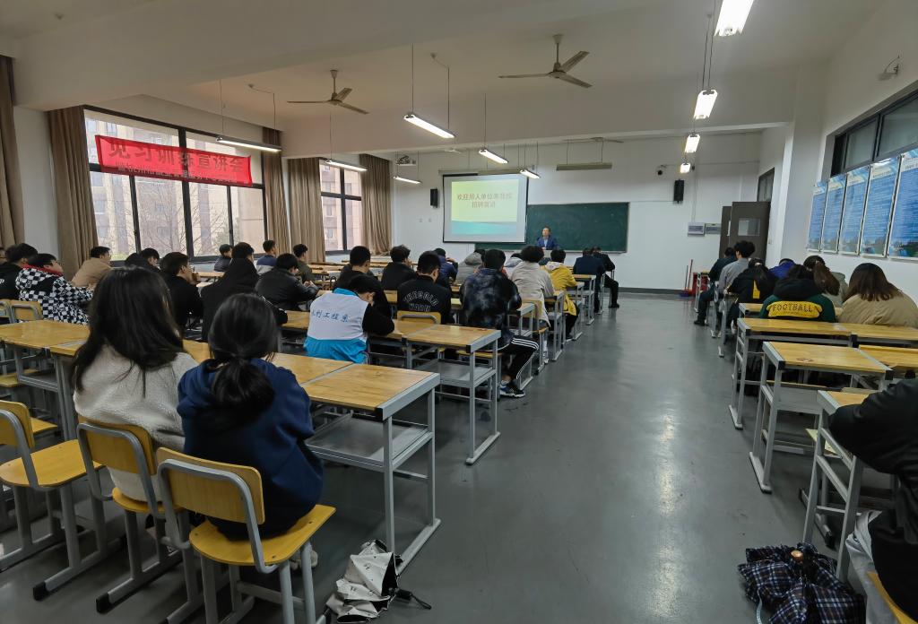 为做好毕业季的就业服务工作,搭建“双向选择”的供需平台,进一步加强用人单位与我校的交流与合作,3月19日下午,江山市水利局相关领导,江山市水利水电勘测设计有限公司、浙江海创环境科技有限公司、浙江元博工程项目管理有限公司3家用人单位负责人来我校进行招聘宣讲。水利工程学院部分2021届毕业生、2022届在校生参加宣讲活动。