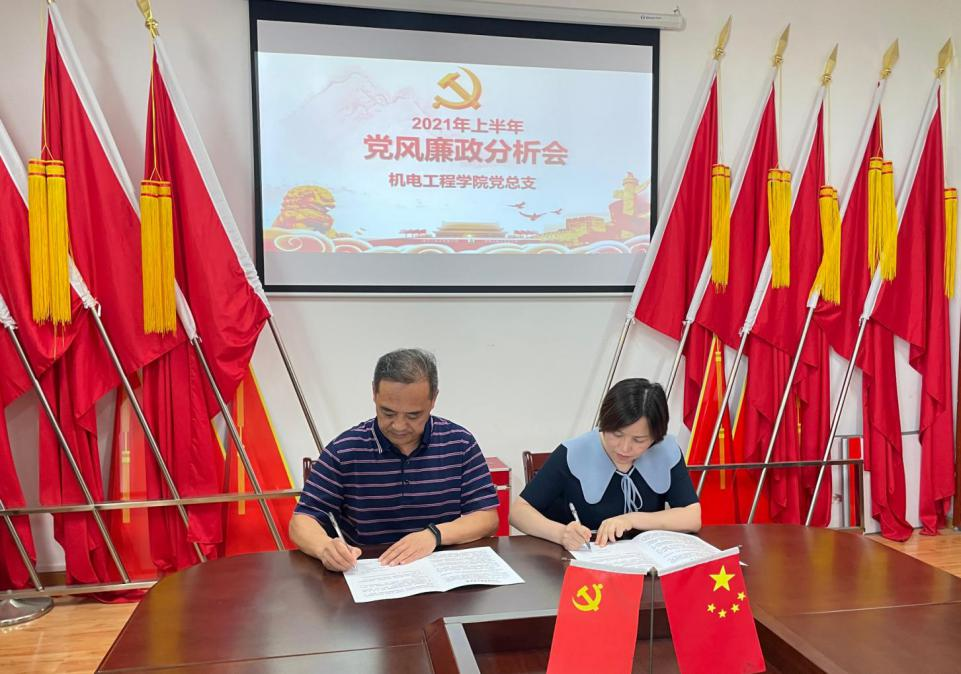 最后,学院党总支书记金永琪与各党支部书记签订了《党风廉政责任书》,明确党风廉政建设工作责任分工,扎实推进机电工程学院党风廉政建设工作落细落实。