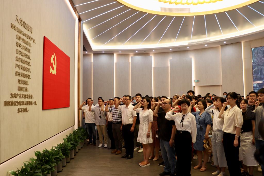 1921年7月,中国共产党第一次全国代表大会在此举行,宣告了中国共产党成立。一百年后来到宣誓墙前,在水利工程学院党总支书记叶乐领誓下,全体党员举起右拳,郑重宣誓:“我志愿加入中国共产党,拥护党的纲领,遵守党的章程,履行党员义务,执行党的决定,严守党的纪律,保守党的秘密,对党忠诚,积极工作,为共产主义奋斗终身,随时准备为党和人民牺牲一切,永不叛党。”铿锵有力的宣誓声响彻大厅,表达了水利铁军坚定不移听党话、全力以赴跟党走的政治信念。