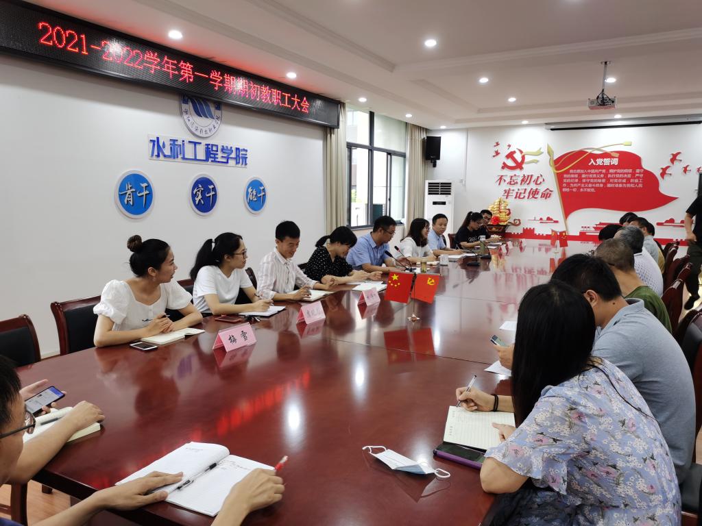新学期新风貌,新学年新篇章。9月8日上午,水利学院召开2021-2022学年第一学期期初教职工大会。水利学院院长刘进宝、党总支书记叶乐、副院长金斌斌、副书记石杨出席会议,水利学院全体教职工参加会议。会议由刘进宝院长主持。