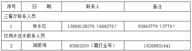 水电维修值班电话: 83863099 高配值班电话: 83863014