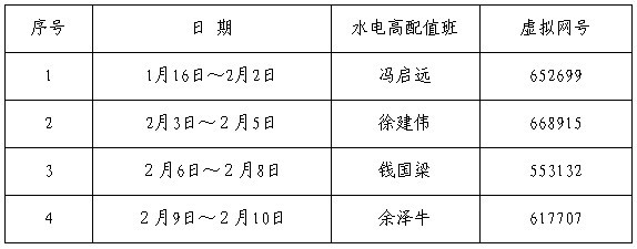 水电维修值班电话: 83863099 高配值班电话: 83863014