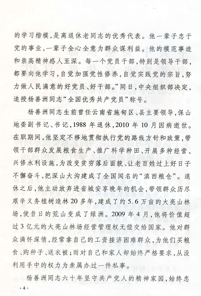上一篇:中共中央组织部关于追授杨善洲同志“全国优秀共产党员”称号的决定
