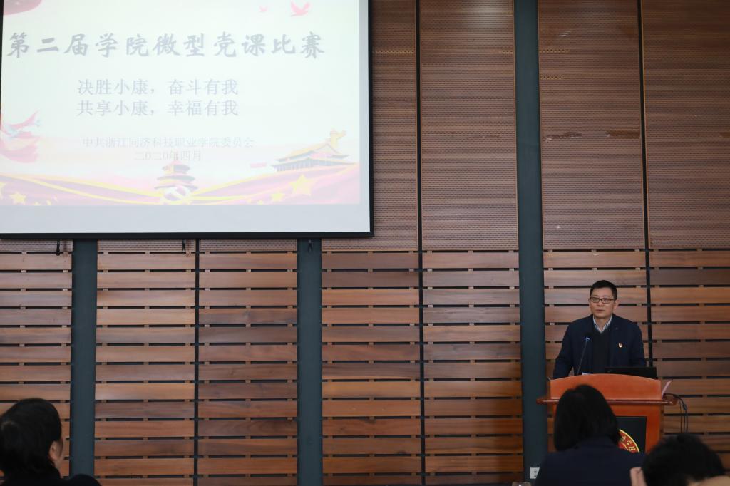 为深入推进习近平新时代中国特色社会主义思想,持续巩固深化“不忘初心、牢记使命”主题教育成果,进一步推动广大党员学理论、提素质、强党性,4月21日,学院在行政楼三楼多功能厅举行第二届微党课比赛,学院党委书记江影,党委副书记、副院长吴宏平,党委委员、组织部部长吴玲洪,党委委员、宣传部部长吴敏启出席比赛,各二级党组织书记、在校办公的党支部书记及组织员到场观摩。