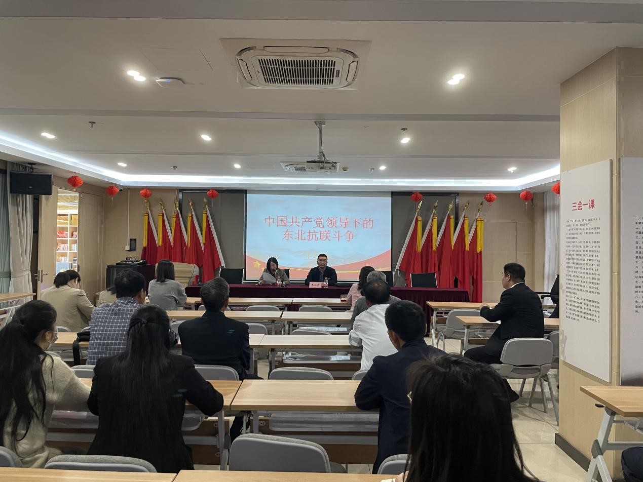 为充分发挥社区地域优势,融合学院教师资源,弘扬红色文化,营造浓厚学习氛围,努力打造“同创共建,学社联动”的社区发展新格局。我院于今年7月与水博社区签约共建大学生思政实践基地。为深入合作交流,凝聚思想共识,1024日下午,我院思想道德与法治教研室赴水博社区开展党课宣讲活动。思想道德与法治教研室主任王红涛作了“中国共产党领导下的东北抗联斗争”主题报告。水博社区党支部书记胡指红主持会议。