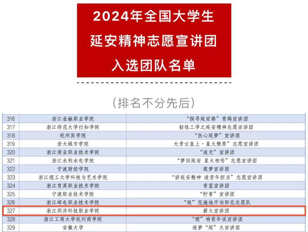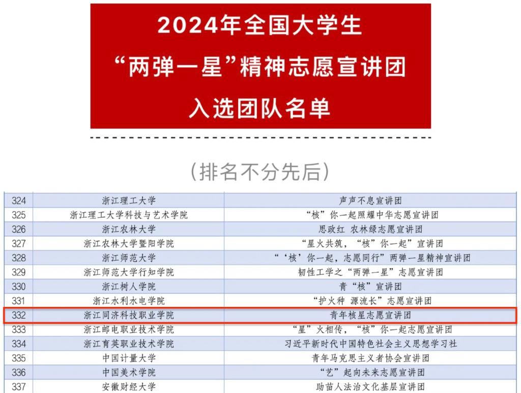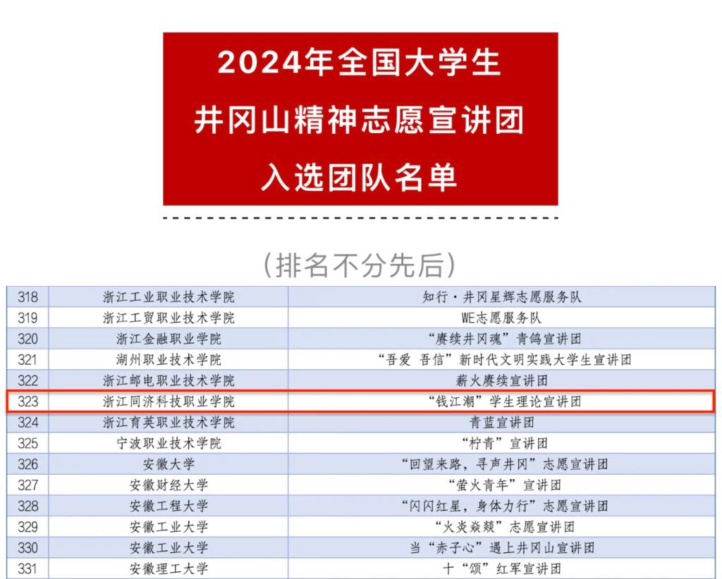 为深入学习贯彻习近平新时代中国特色社会主义思想和党的二十大精神,更好继承和弘扬中国共产党人精神谱系,我校马克思主义学院选送了“钱江潮”学生理论宣讲团、薪火宣讲团、青年核星志愿宣讲团参与本次遴选活动,三支宣讲团均分别成功入选2024年全国大学生井冈山精神、延安精神、“两弹一星”精神志愿宣讲团。